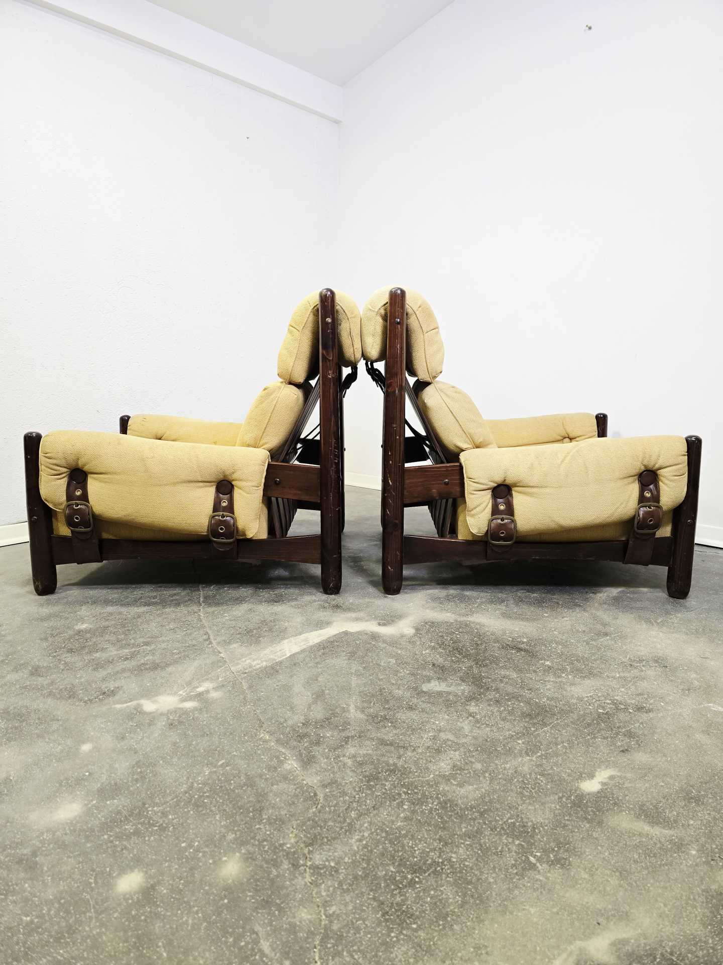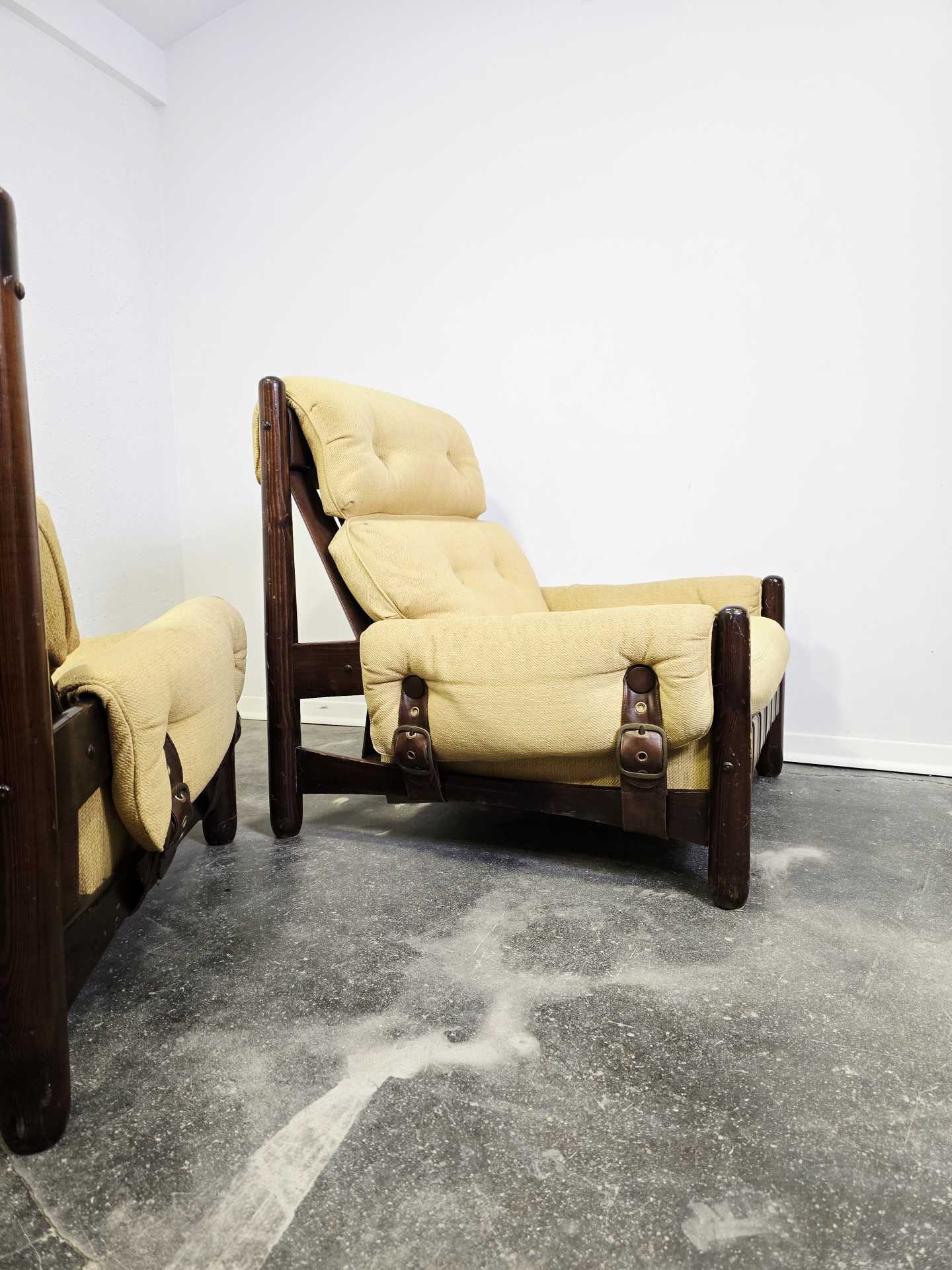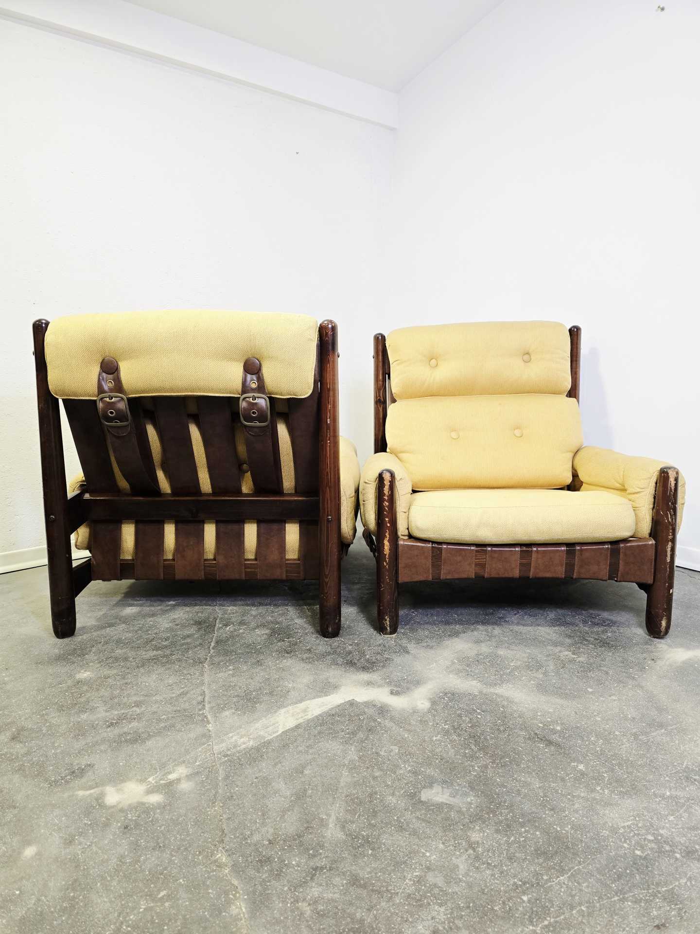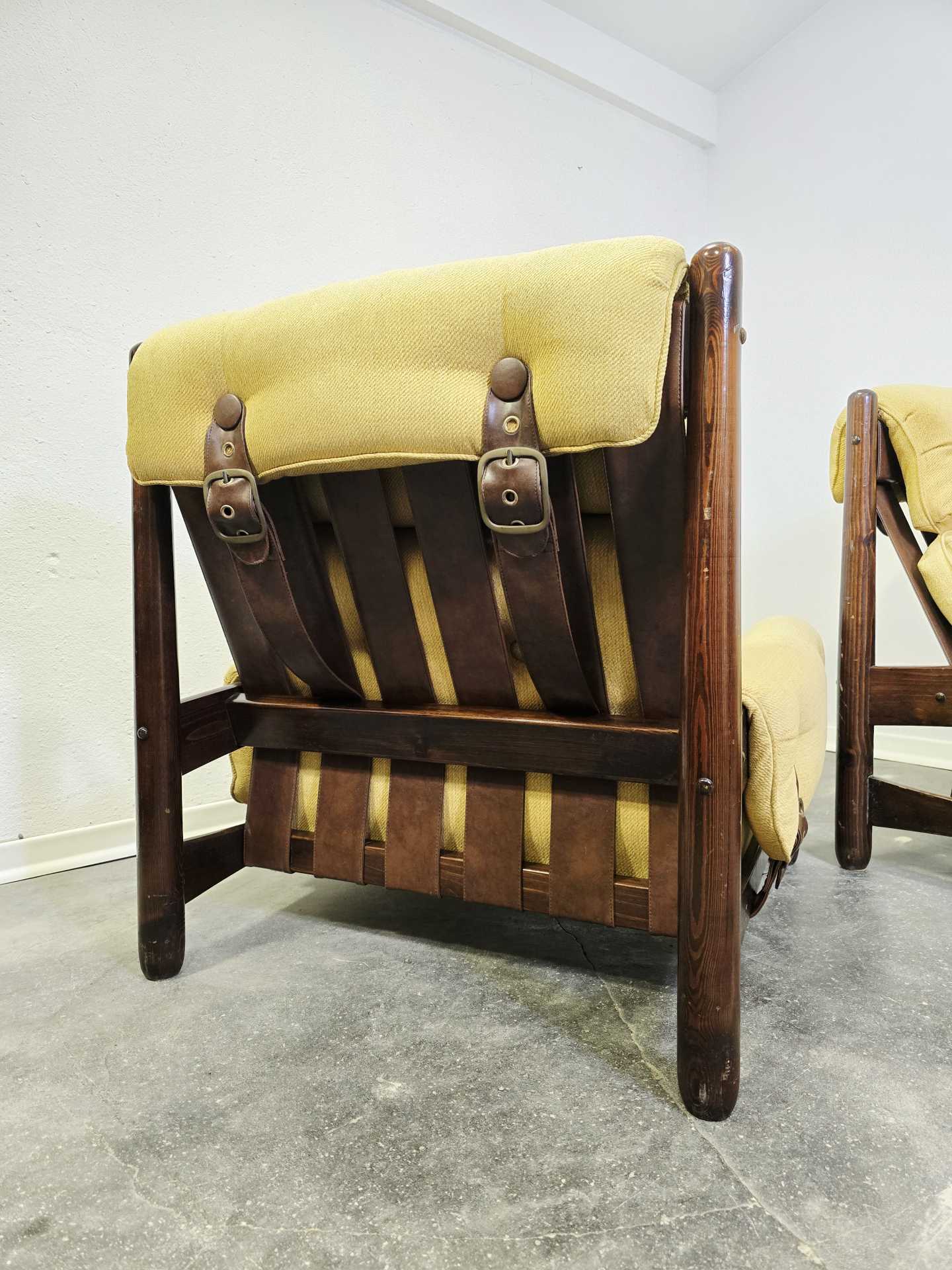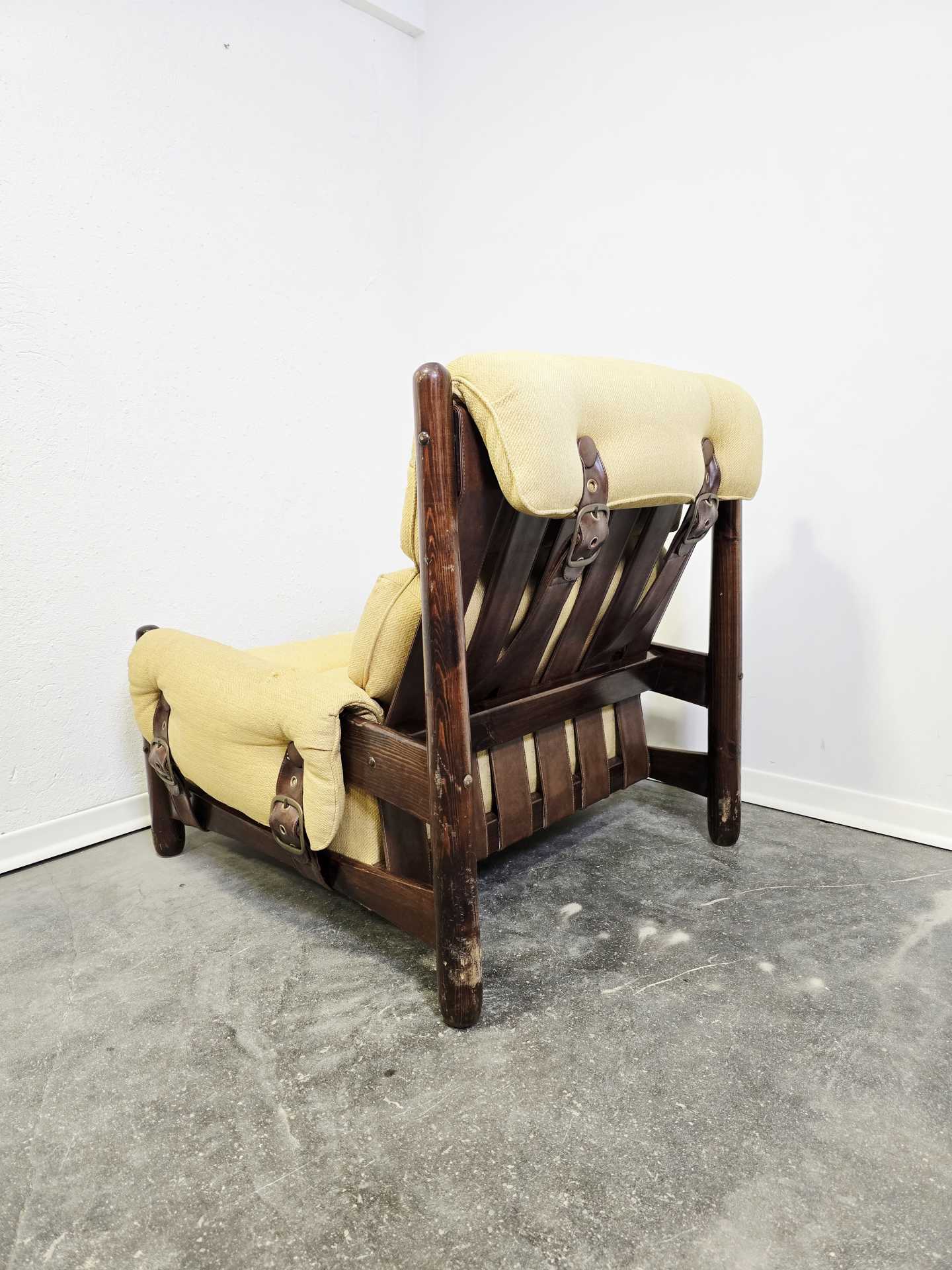 The lounge chair features its original mustard-yellow upholstery, adding warmth and character, and remains in good vintage condition. Visible signs of age and use are present, consistent with its era, and contribute to its genuine vintage appeal.