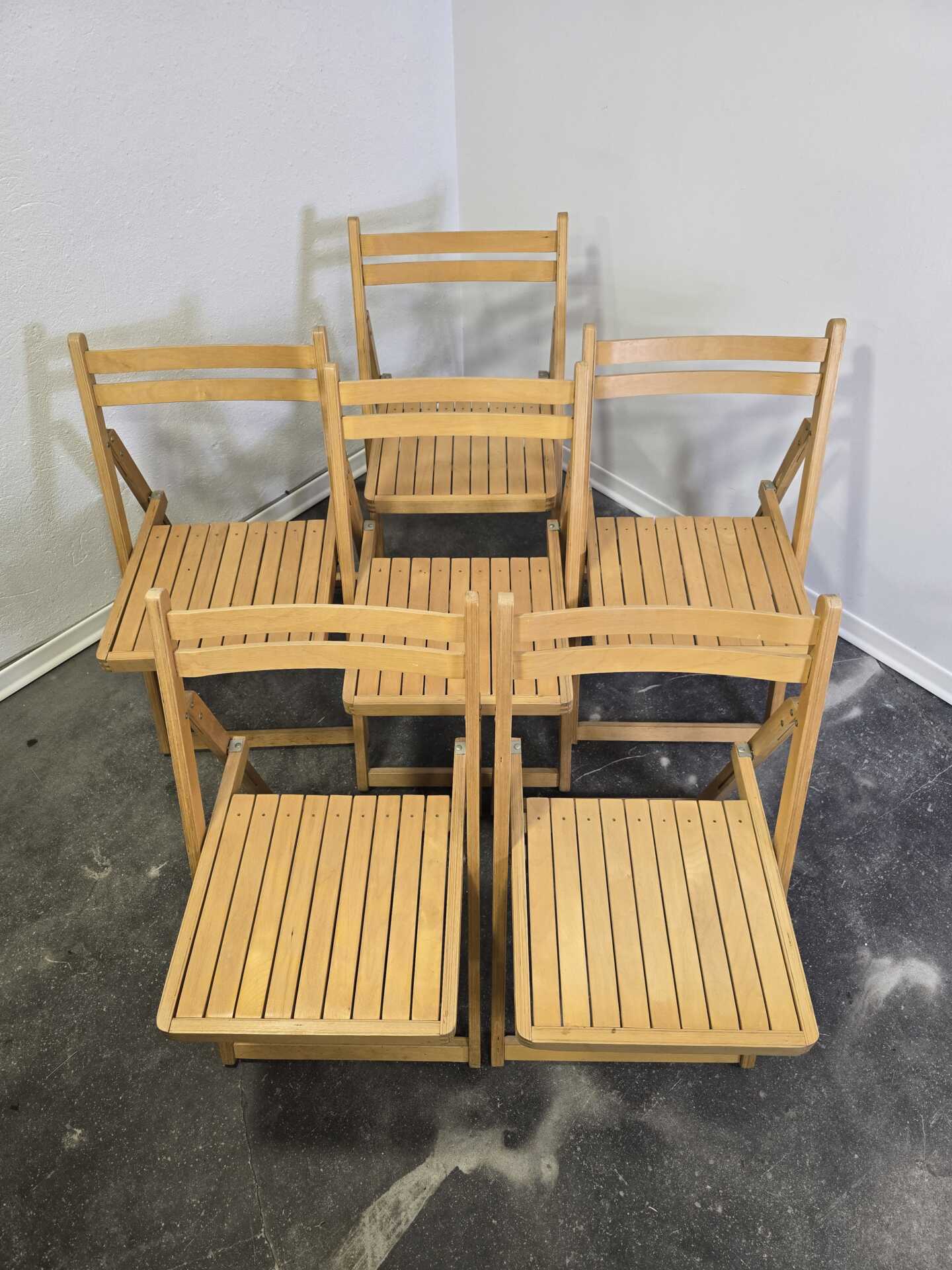 A genuine piece of 1980s design, this solid wood folding chair captures the era’s focus on practicality, honest materials, and clean, unfussy lines. With its warm natural wood tone and straightforward construction, it reflects the quiet, functional aesthetic that defined late-modern and Scandinavian-influenced furniture of the 80s.