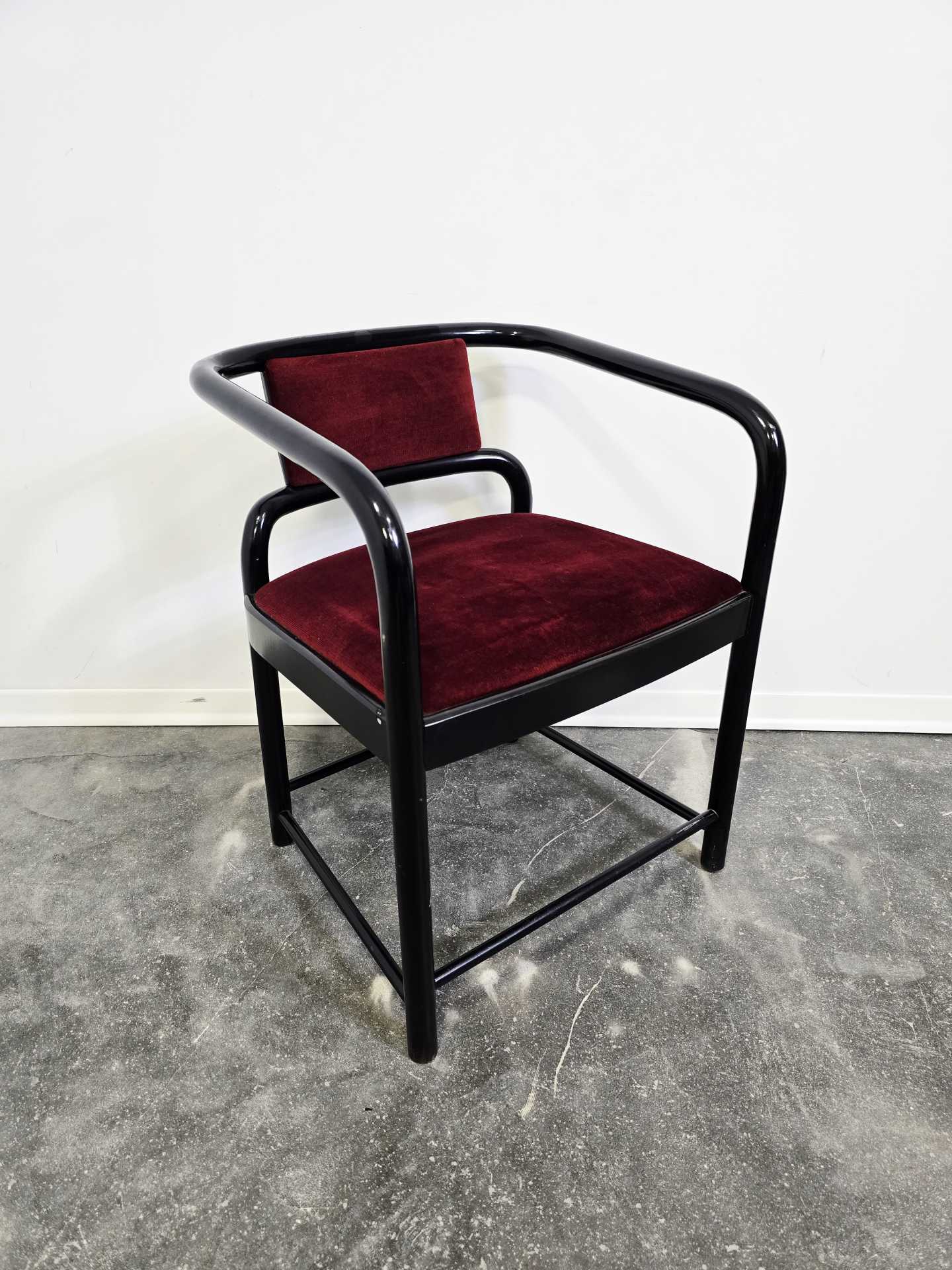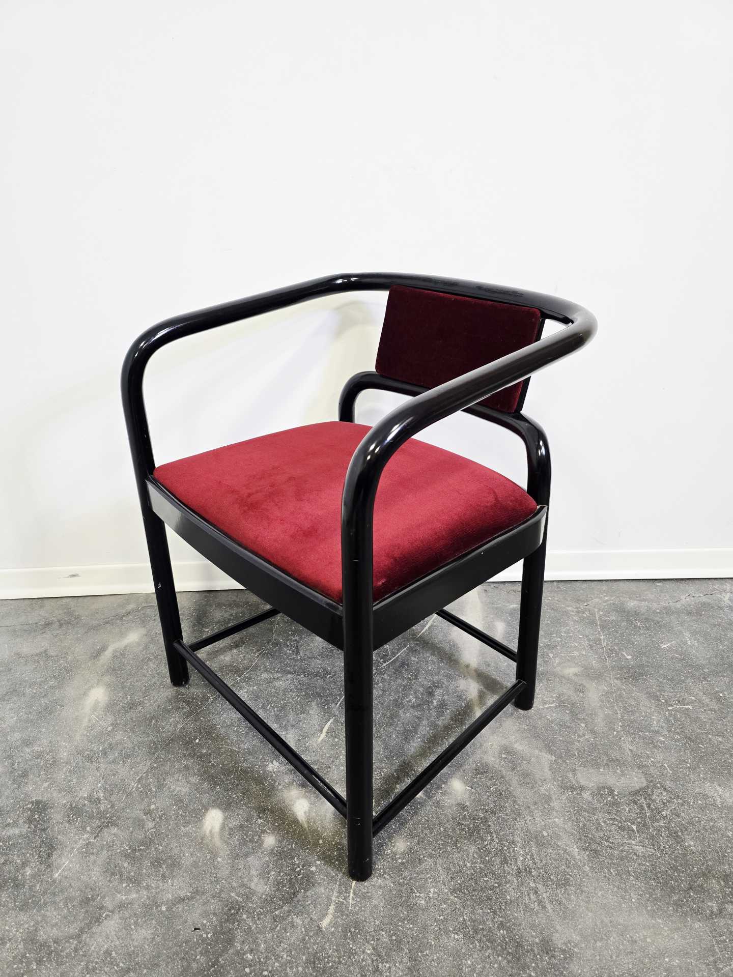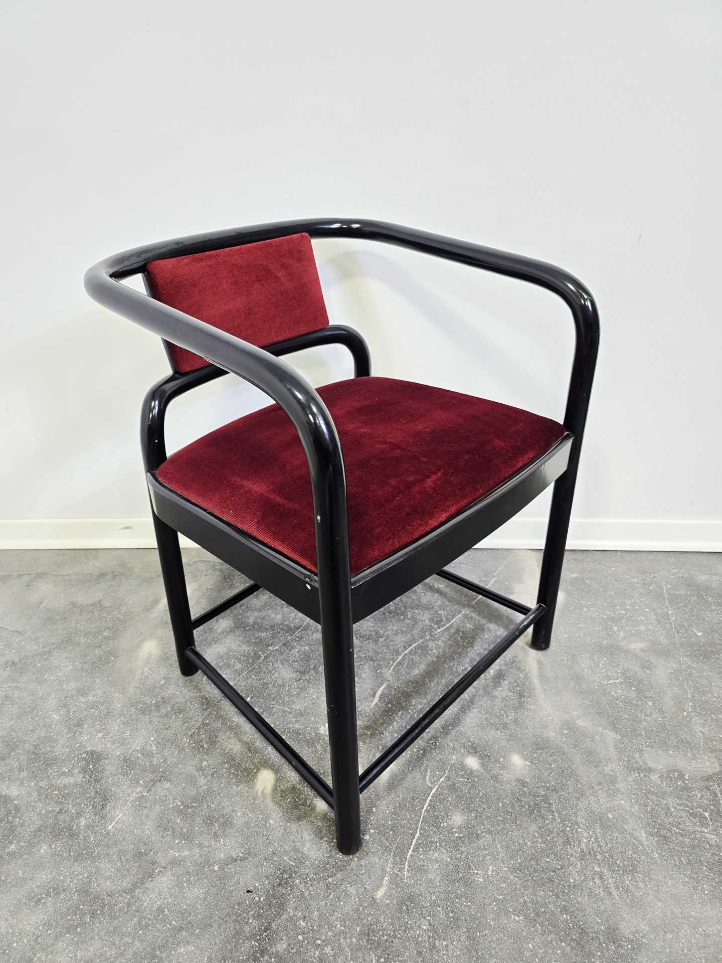 Add a touch of timeless elegance to your home with this beautifully designed vintage-style armchair. Featuring a sleek black tubular frame and plush deep red velvet upholstery, this piece blends modern minimalism with classic charm. The curved armrests and supportive backrest provide both comfort and style, making it perfect for a reading nook, living room, office, or boutique interior.